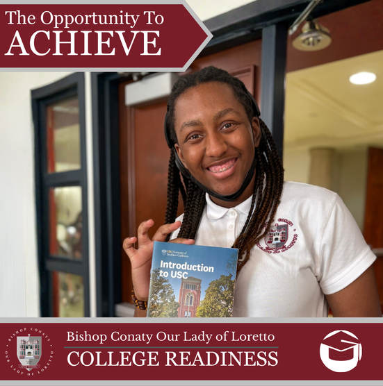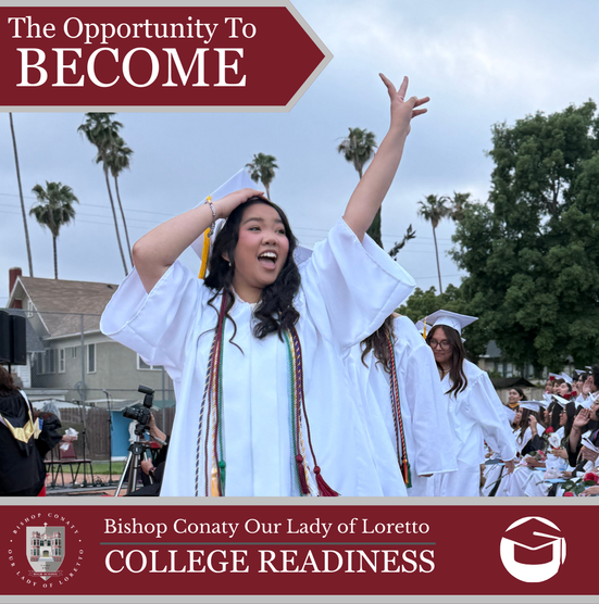 Bishop Conaty-Our Lady of Loretto High School is the first Archdiocesan Catholic girls' high school in Los Angeles and still leading the way in education. Bishop Conaty is a comprehensive, college preparatory high school that prepares young women for success. With high expectations for excellence, Bishop Conaty educates each student spiritually, academically, aesthetically, physically, and technologically. We are an inclusive, Christ-centered high school and accept young women of all races and creeds, and provides them with the knowledge and skills necessary to succeed in the college or university of their choice. At Bishop Conaty Our Lady of Loretto, graduates will be leaders of their church, workplace, community and home!